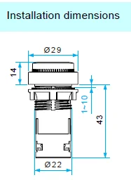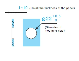 Примечание: Кнопка также может быть установлена в проем 25 монтажного отверстия, после добавления кольца переменного диаметра можно установить в проем монтажное отверстие 30.
