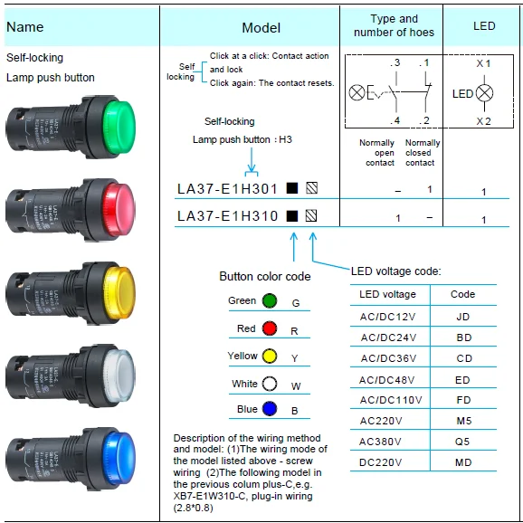 (2) Следующая модель в предыдущем столбце плюс-C, например, XB7-E1AW310-C, вставная проводка (2,8 * 0,8)