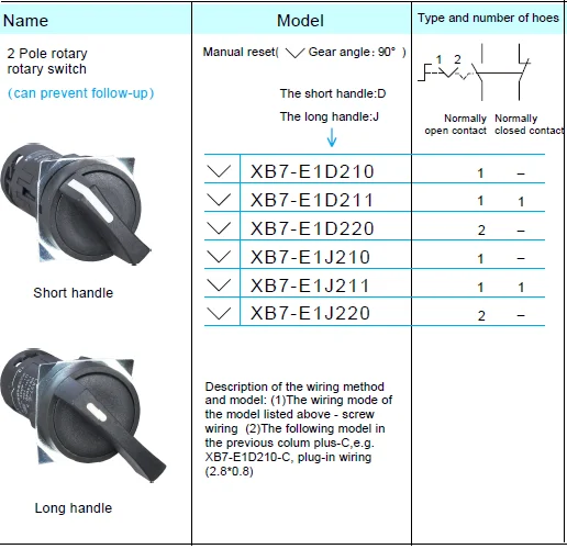 2-полюсный поворотный переключатель предотвращает последующее управление Короткая ручка 1контактный переключатель