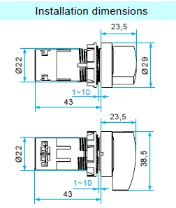 Механическая жизнь | Пружинная кнопка: 5 миллионов раз Ручка переключателя: 1 миллион раз Кнопка аварийного останова: 300 000 раз |